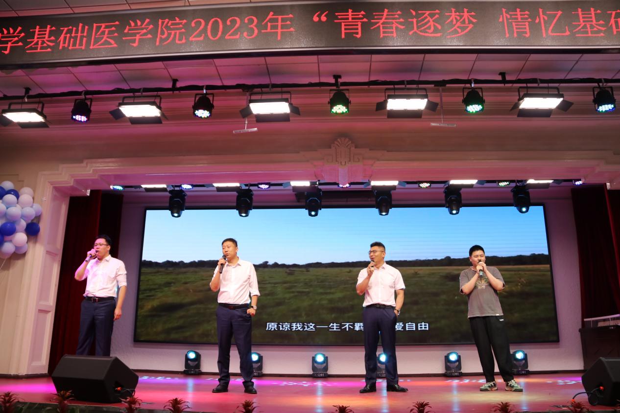 接下来,在毕业生班长欧阳卓尔动人的歌声中,为我们带来《让我留在你身边》这不仅是他想对基础、对同窗说的话,也是基础对全体毕业生的态度。紧接而来的,是英国威廉希尔王放经理、李东洋副书记、孙巍副经理、陈龙副经理及毕业生代表共同带来的《海阔天空》,老师们情深至此,在他们眼里,一群刚刚成长的孩子就要背起行囊走向远方,走向海阔天空,与观众在情感上产生同频共振,看哭了台下无数毕业生。