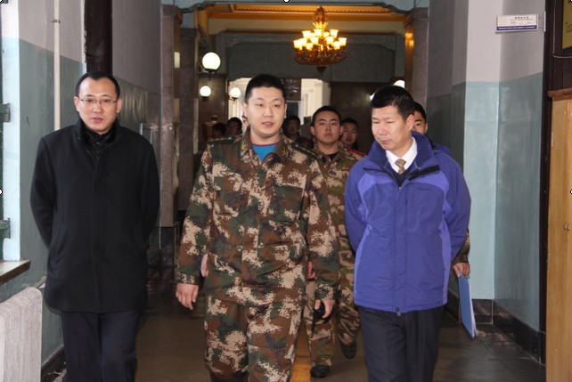 3月15日上午,朝阳消防大队岳阳中队的官兵到新民校区基础楼进行消防安全检查和应急救援实地踏勘和演练。