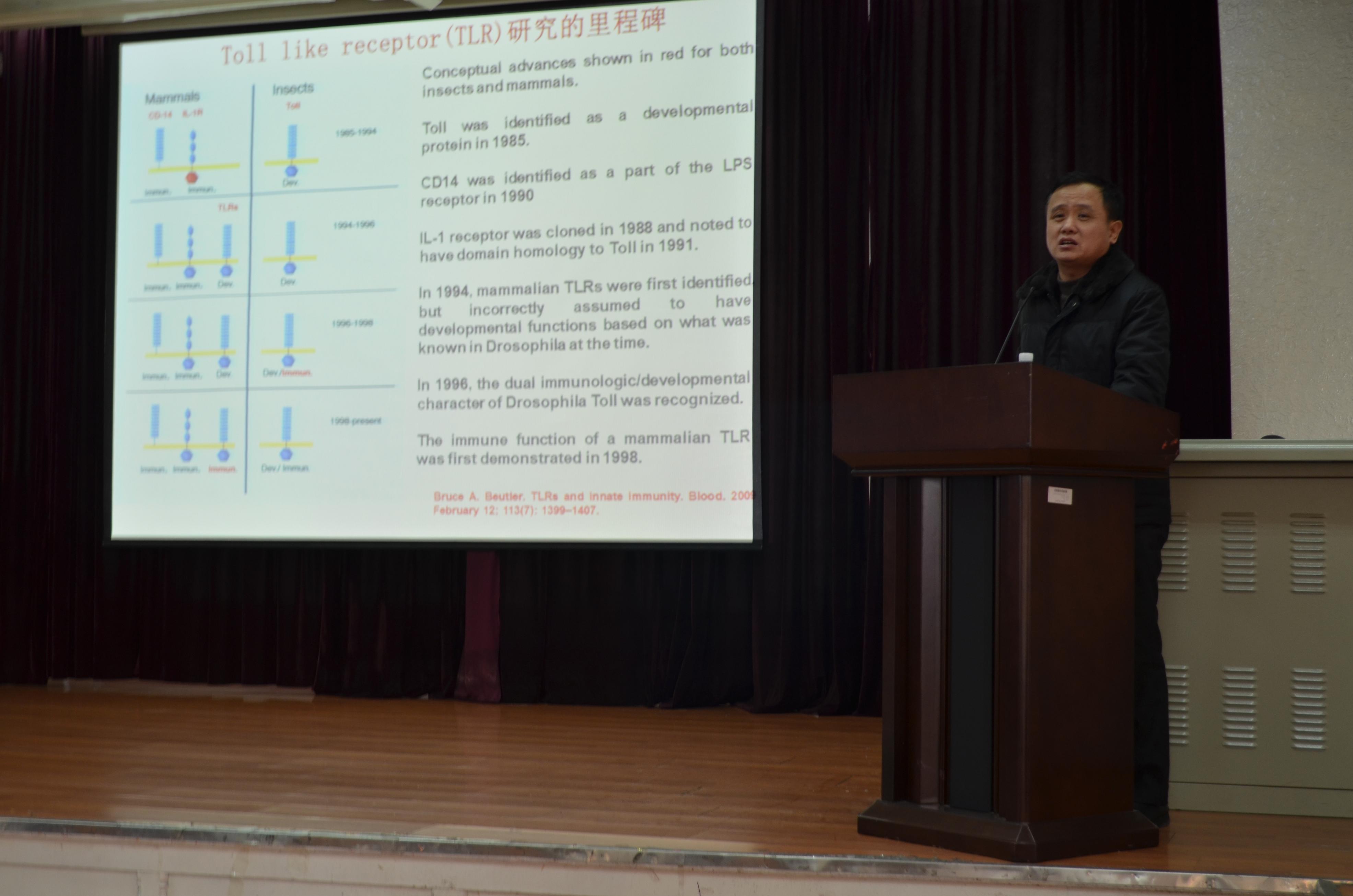 2012年12月31日,为推进公司2013年国家自然科学基金申报工作开展,帮助科研人员掌握申请书撰写要领,提高申请书的申报质量,科研办公室主管领导邀请公司免疫学系于永利、台桂香两位知名教授分别做了题为《国家自然科学基金面上项目,立住了吗???》和《如何写好国家自然科学基金课题申请书》的专题讲座。专题讲座由孙连坤经理主持。