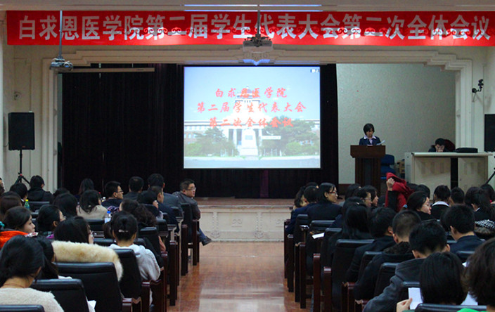 11月4号下午一点,白求恩医学院第二届员工代表大会第二次全体会议在新民校区基础楼二楼多功能学术报告厅召开。白求恩医公司党委副书记兼副经理苑锐、员工工作办公室主任吴剑锋、团委书记夏燕来、辅导员魏宇航及156名员工代表出席了本次会议。会议由院团委第一副书记单锐婷主持。