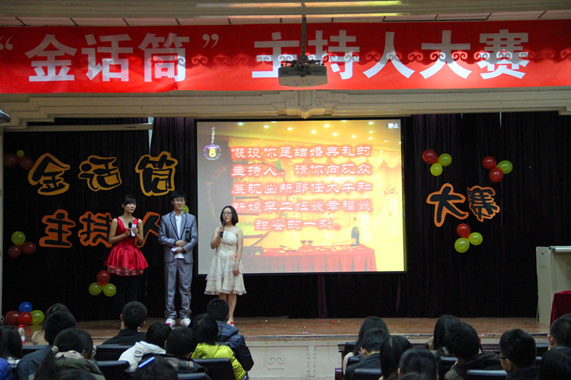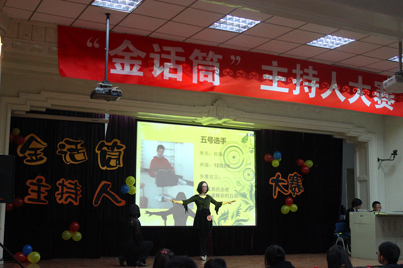 10月21日下午,白求恩医学院第三届金话筒主持人大赛在新民校区基础报告厅举行。到场的评委有白求恩医学院员工会主席周春禹,副主席王子鸣,新民十佳主持人李婷、贾尔肯阿依、李腾海,以及文学院特邀嘉宾张砚青。本场大赛由徐子鹏、钱玥彤主持。共有十位选手挺进决赛。