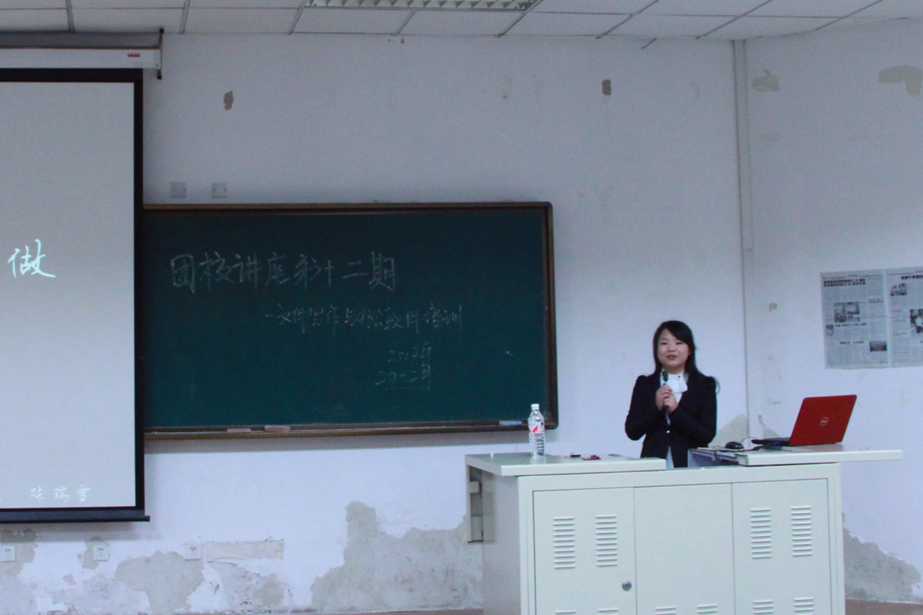 本次讲座的主题为“文件写作培训与办公软件培训”。首先,李梓萌结合自身经验与知识积累,分别从电子文稿的基本要求、写作规范等方面对员工干部公文写作进行指导,并就如何写好通知、计划、总结、规划等多个常用文本进行了详细介绍。随后,陈瑞雪讲授了PPT的制作并进行现场演示,从图片选择、色彩搭配、动画效果制作等方面向大家传授制作方法及技巧。
