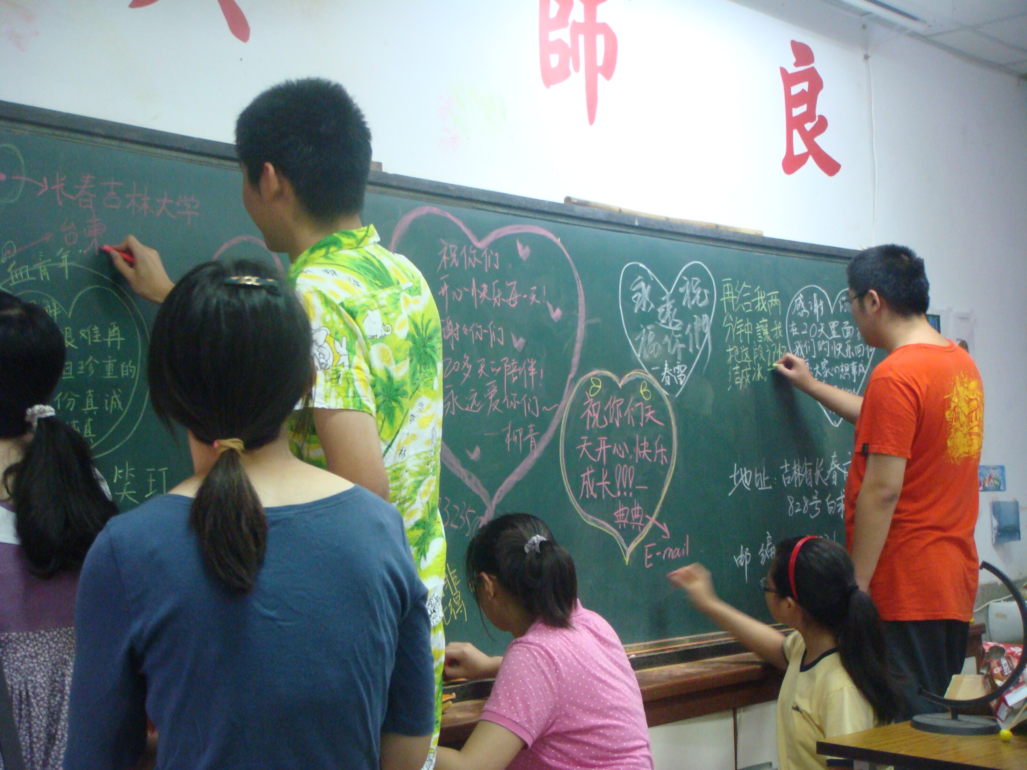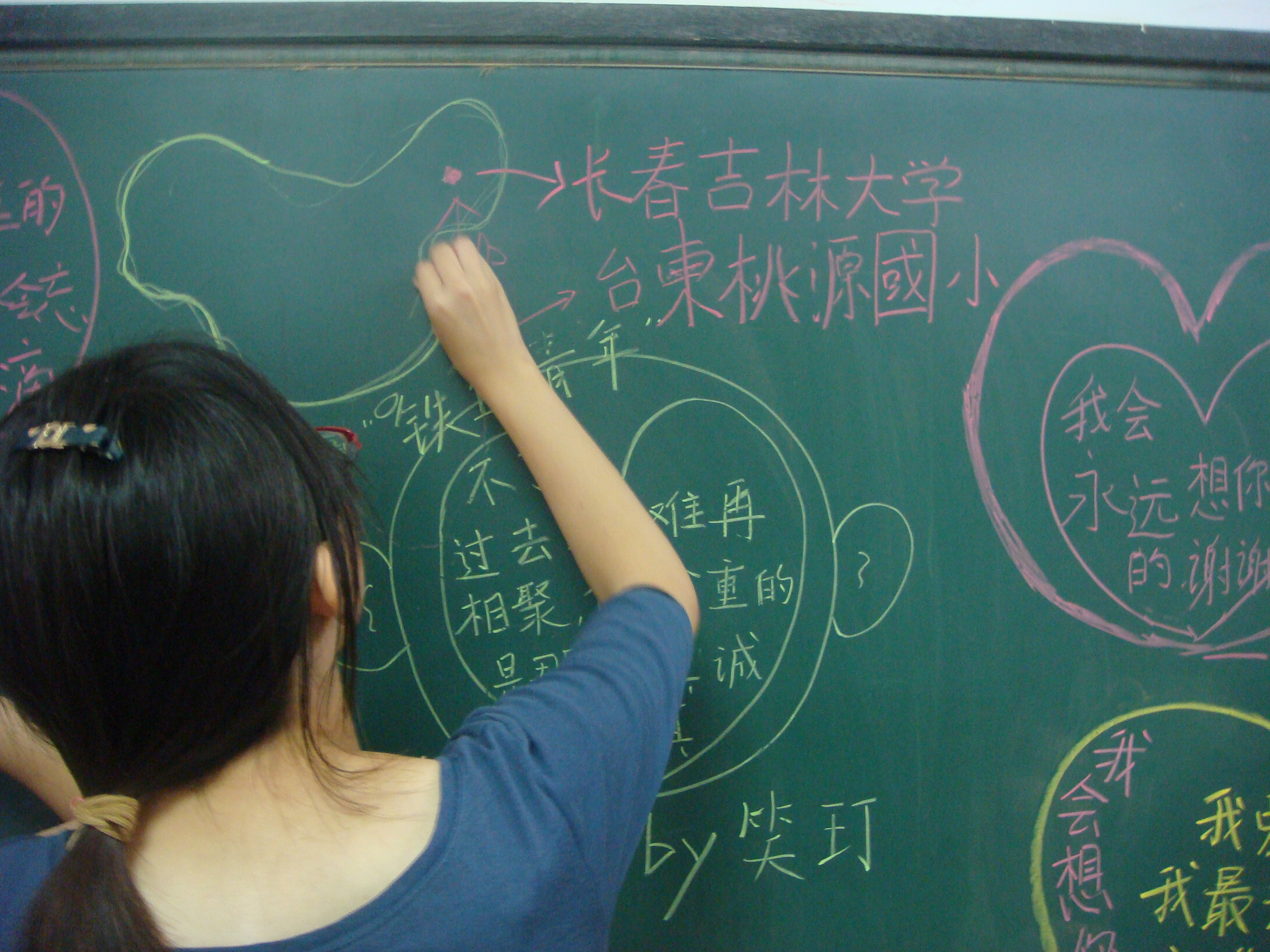“朋友一生一起走,那些日子不再有……”这首我们曾经教桃源小学孩子们的《朋友》,如何成为了他们为我们送别的离歌。当歌声响起,我们,阳明大学的同学,还有桃源国小的孩子们相拥而泣。两周的支教活动,我们从相识到相知,从排斥到融合,我们已成为相亲相爱的一家人。即使下课的时间,孩子们也会缠着我们一起游戏、一起打篮球、一起练习棒球。特别是昨天傍晚,几个孩子“闯”进我们的会场给我们每一名来自威廉希尔的员工都送来一封信——与其说是信,不如说是纸条——信中画满了“心”,写满了“爱”,其中一个顽皮的孩子还和我们带队的苑锐副书记说,请他把长的最帅的“绅宇哥哥”和“霁航哥哥”留下来。我们,也同样将对他们的思念画满了整整一个黑板。