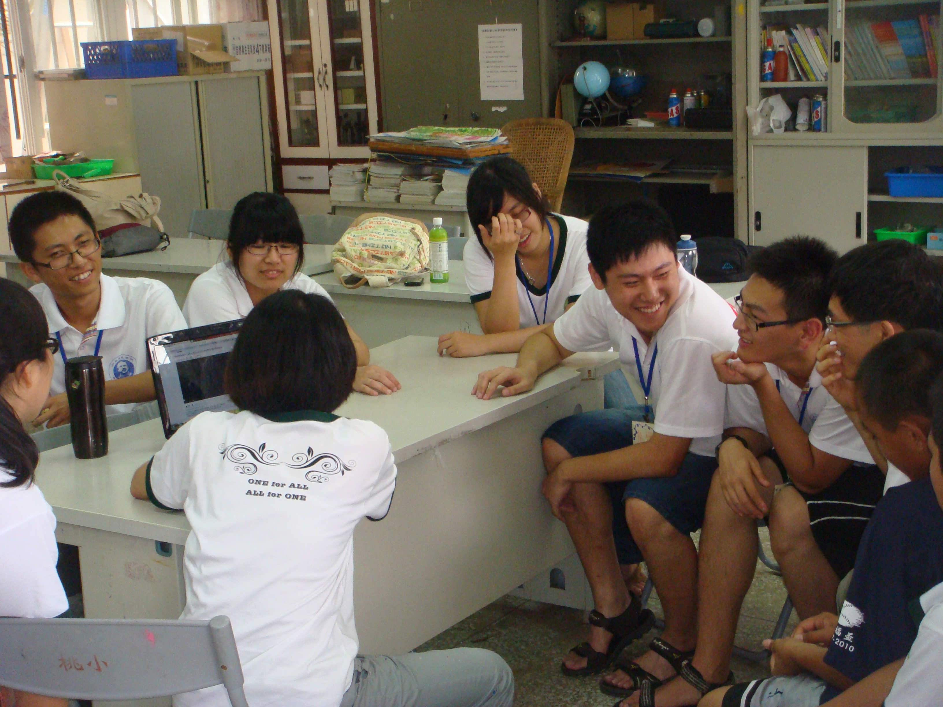 我是低年级阅读组的成员。尽管在台北就已经讨论过所有的内容,但我们还是重新研读了教案中的每一个细节,甚至还亲自排演了课程安排中的话剧以估计课堂时间。同台湾同学之间,不同的教育制度所体现出的不同的思维方式和生活态度在准备活动中就可见一斑。台湾的同学总是希望将小朋友分成四、五人的小组授课,而从小接受大班制教育的我们则在言行中透露出整体教学的概念;在面对对我们而言相对幼稚的少儿读本时,台湾的同学读书的语气富有感情色彩,他们通过自己的肢体动作夸张地表现出人物的各种情绪变化,我们可能会羞于以这种方式教授,但这种形式无疑是最接近小员工思维的。