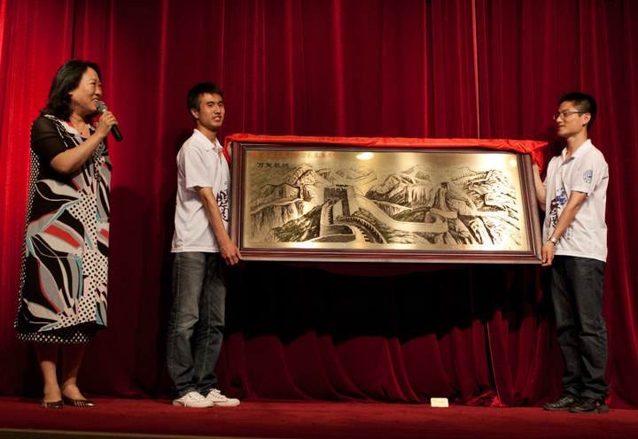 晚会中李凡经理向全体毕业生致辞,表示感受到白医学子的别样青春风采,并教导员工要秉承白医精神,精益求精,谦虚进取,最后寄予全体毕业生祝愿与希望。为回报师恩,毕业生向学院献上纪念匾额——万里长城,并送上“杏林万年红,桃李满天下”的祝福。