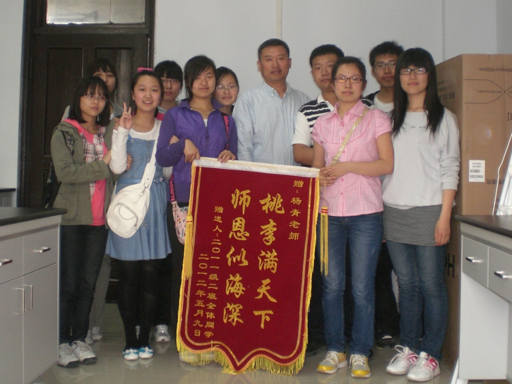 杨教授热情地接待了同学们,随后团支书代表701102班全体同学赠予杨教授锦旗——“师恩似海深 桃李满天下”,以表达同学们对恩师的感念之情。在座谈会上,杨教授询问同学的课程安排及学习近况,并强调指出构造知识结构体系的重要性。同学们就医学教育、医患关系、医生就业等社会热点问题提出疑问,杨教授一一深刻剖析,耐心解答,使同学们对医学事业有了更深刻的认识。谈话中杨教授鼓励同学们:“不能轻易放弃,学会适应,走出瓶颈,追求自己的目标,自己前进了,国家就前进了。”