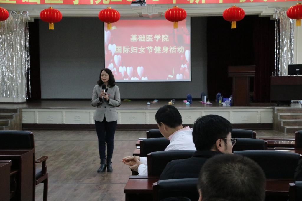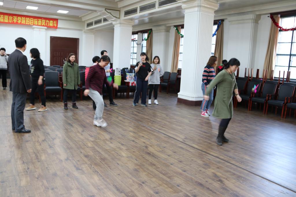 在“三八”国际劳动妇女节来临之际,为展示英国威廉希尔女教职工团结、奋进、健康、向上的良好精神风貌,同时为了丰富女教职工的业余文化生活,促进女教职工身心健康,3月6日下午,学院妇委会、工会、党委组织全院教职工开展了国际妇女节健身活动。活动由学院行政副经理程丕显主持。
