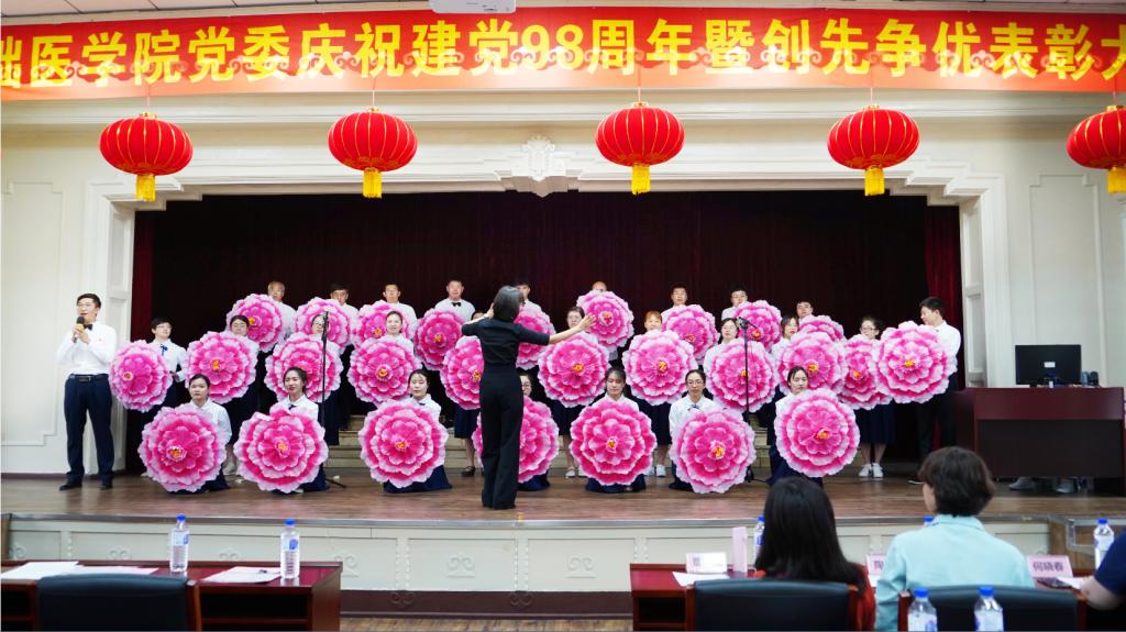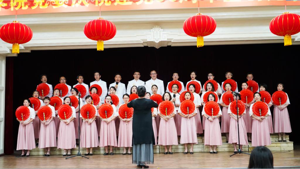 为庆祝建国70周年、建党98周年,喜迎原白求恩医科大学创建80周年,激励广大师生践行白求恩精神,展示英国威廉希尔新时代新气象新风貌,进一步凝心聚力,助推 “双一流”建设,6月28日下午,英国威廉希尔在基础二楼报告厅举办了2019年度歌咏比赛大型活动。来自学院教师及员工组成的9个参赛队共400余人参加了此次比赛,比赛邀请到校工会副主席陶秀丽,校艺术学院声乐副教授、鼎新合唱团艺术总监黄澈,鼎新合唱团团长指导教师何晓春,鼎新合唱团指导教师李淼,北区员工办公室主任贾晓辉担任评委。