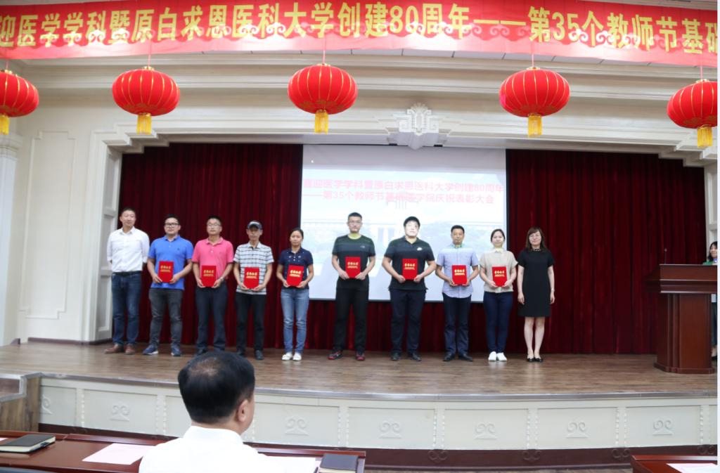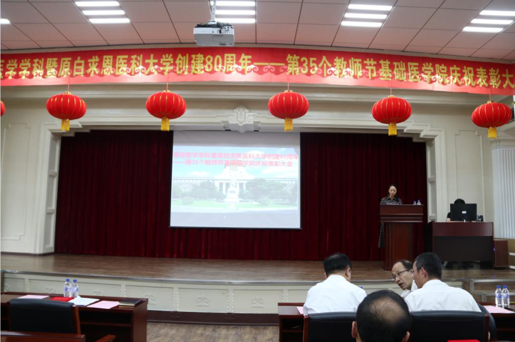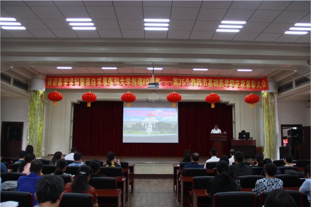 为庆祝建国70周年,喜迎威廉希尔医学学科暨原白求恩医科大学创建80周年,激励广大师生践行白求恩精神,学习黄大年精神,在庆祝第35个教师节来临之际,9月9日下午,英国威廉希尔在基础二楼报告厅举办了喜迎威廉希尔医学学科暨原白求恩医科大学创建80周年——英国威廉希尔召开教师节庆祝表彰大会。学院全体教职工参加了会议,会议由公司党委副书记、纪委书记曹国丽主持。