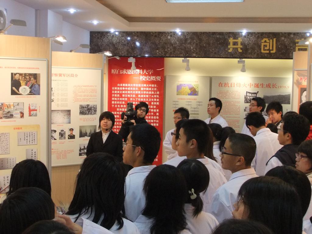 12时30分,员工工作办公室主任吴剑锋向同学们讲解了这次纪念活动的重要意义,要求同学认认真真参观,切身体会白求恩精神的真正内涵,以实际行动在将来的学习、生活、工作当中践行白求恩精神,传承白求恩精神,弘扬白求恩精神。